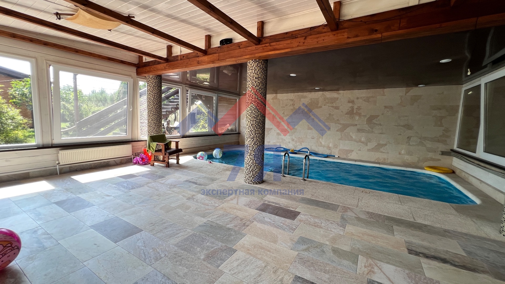 3 жилые комнаты, сауна, бассейн 60 кв.м., котельная. Отличное решение для гостей или сдачи в аренду.
